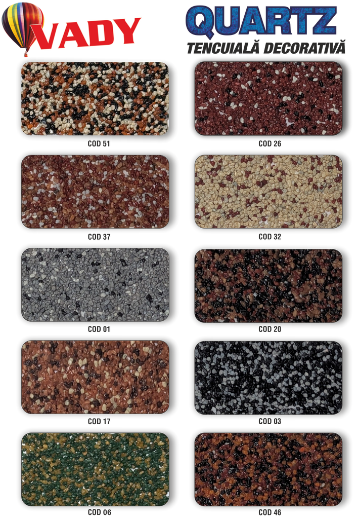 Produsul este un amestec omogen de lianți organici (rășini acrilice), umpluturi minerale (cuart-granule) și aditivi de finisare (dispersanți, antispumanți, stabilizatori, hidrofobizanți, îngroșători etc.), destinat finisării decorative și protecției pereților interiori și exteriori, fiind utilizat ca strat final de protecție pentru sistemele de izolație termică.