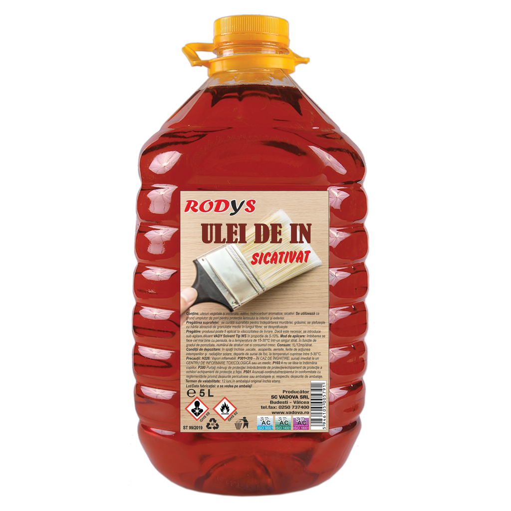 ULEIUL DE IN este un produs pe bază de ulei de in fiert, rășini alchidice, sicativi, solvenți organici și aditivi de finisare. Se remarcă prin aplicabilitate ușoară și o capacitate ridicată de penetrare în suport. Îmbunătățește rezistența suprafeței la umiditate și la variațiile de temperatură, formând pelicule transparente care pun în valoare structura acestuia. Este utilizat pentru grunduirea și finisarea suprafețelor lemnoase atât la interior, cât și la exterior.