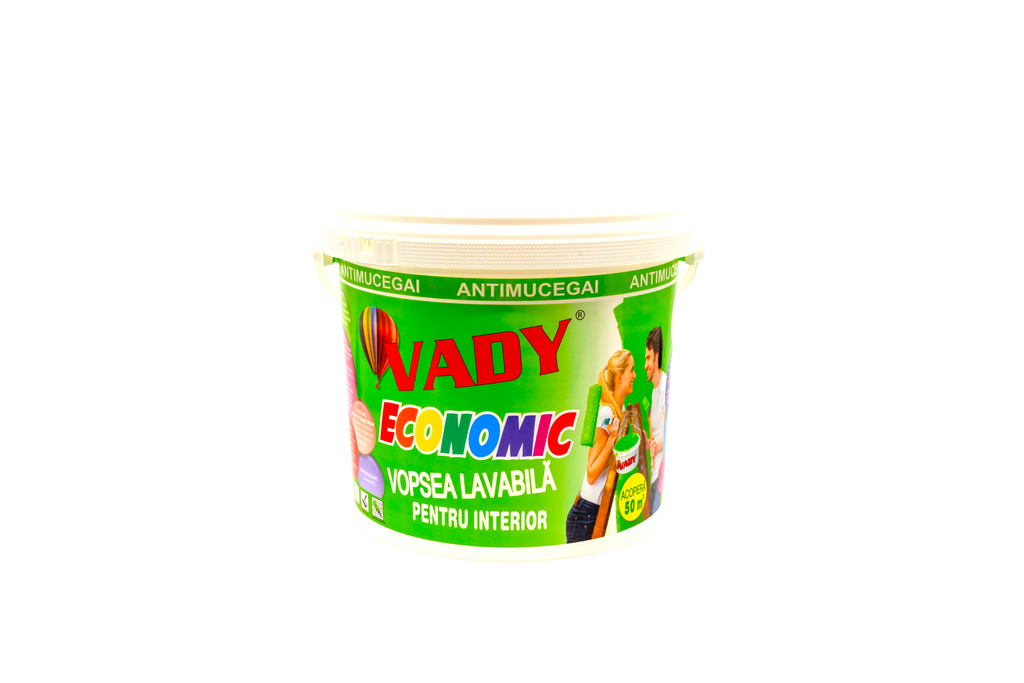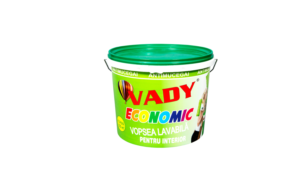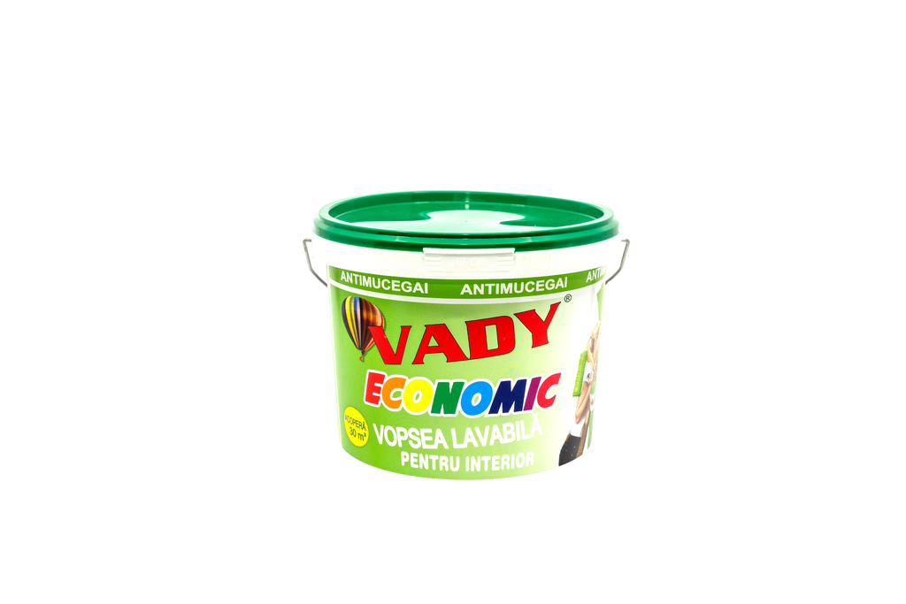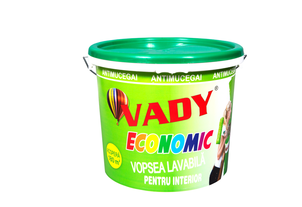 VADY ECONOMIC este o dispersie apoasă pe bază de copolimeri acrilici, pigmenţi, materiale de umplutură şi aditivi, ce poate fi colorată cu paste pigmentare VADY COLOR. Se utilizează pentru finisarea decorativă şi de protecţie a pereţilor interiori, fiind aplicabilă pe gleturi, tencuieli de var şi ciment, beton şi alte suporturi minerale. Produsul aderă foarte bine la suprafaţa pregătită corespunzător, are o excelentă aplicabilitate şi formează pelicule rezistente la ştergere. În plus, prezintă uscare rapidă, oferă o bună rezistenţă în timp şi permite colorarea într-o gamă variată de nuanţe.