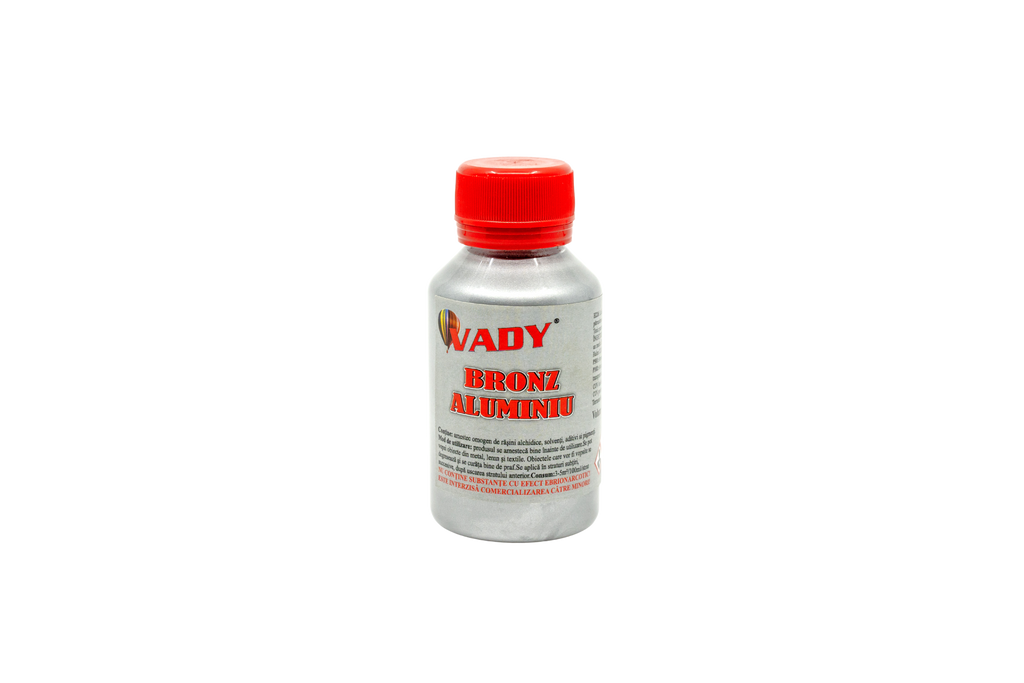 VADY SOLUȚIE BRONZ ALUMINIU este un amestec omogen de rășini alchidice cu uscare la aer, pastă de aluminiu, materiale de umplutură, solvenți și aditivi de finisare. Este destinată vopsirii suprafețelor metalice, precum uși de sobe, șeminee, obiecte metalice de mici dimensiuni, dar și a suprafețelor din lemn și textile, atât la interior, cât și la exterior. Oferă o bună putere de acoperire, are un timp de uscare relativ rapid și formează pelicule decorative cu un efect metalizat de bronz aluminiu.